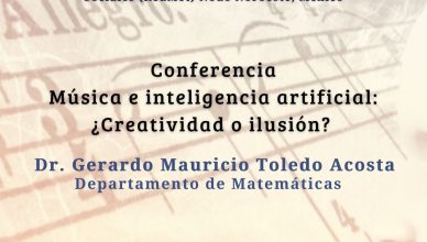 Conferencia Música e Inteligencia Artificial: ¿Creatividad o ilusión? Impartida por: Dr. Gerardo Mauricio Toledo Acosta Departamento de Matemáticas 15 de abril, 11:00 horas, SUM