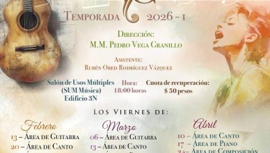 Temporada de Viernes de Concierto 2026-1 Dirección M.M. Pedro Vega Granillo Asistente Rubén Obed Rodríguez Vázquez Aplica puntos Culturest, 18:00 horas, Cuota de